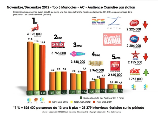 Diagramme exclusif LLP/RCS Zetta - TOP 5 radios musicales - 126 000 novembre-décembre 2012