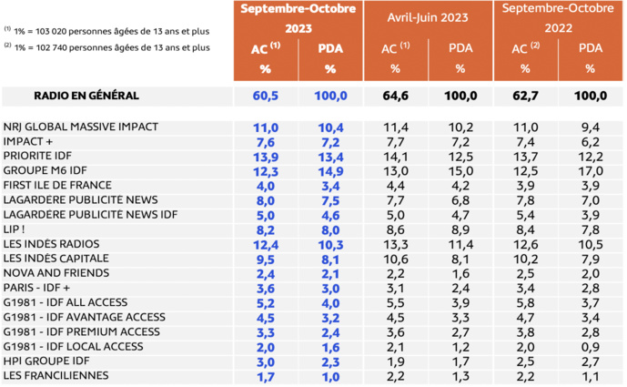 Médiamétrie - EAR > Île-de-France - Septembre-Octobre 2023 - Ensemble 13 ans et plus - Copyright Médiamétrie - Tous droits réservés