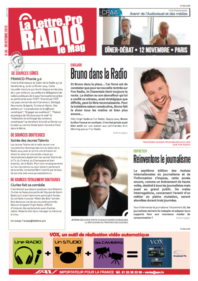 Abonnez-vous au magazine papier de La Lettre Pro de la Radio et faites ainsi bénéficiez vos équipes de contenus exclusifs. Recevez ainsi tous les quinze jours La Lettre Pro de la Radio en format papier et numérique pour consulter votre magazine sur toutes les plateformes existantes (Web, iPad, iPhone, Android...).