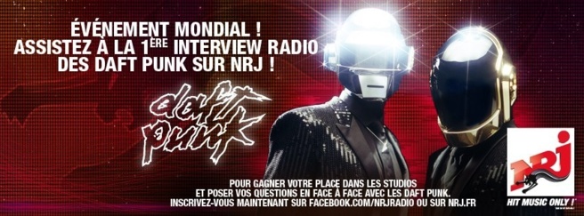 A quelques jours de la sortie de leur nouvel album "Random Access Memories", Thomas Bangalter et Guy-Manuel de Homem Christo devraient confier tous leurs secrets au micro de NRJ. Mais une question reste en suspens : viendront-ils à visage découvert ? A visage découvert ou pas, toujours est-il que NRJ réalise ici une belle opération.
