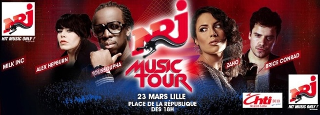 NRJ offre aux lillois un concert unique et gratuit en plein air ce samedi 23 mars à partir de 18h, Place de la République, réunissant sur scène un plateau d'interprètes du moment : Youssoupha, Zaho, Zaho, Brice Conrad, Alex Hepburn, Milk Inc. ou encore Lylloo.