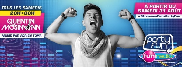 Depuis le 31 août, Quentin Mosimann a rejoint rejoint les DJ résidents de l'émission Party Fun tous les samedis et mixe donc en live chaque samedi de 20h à minuit. Ce "showman et véritable performer" indique la station, avait déjà offert plusieurs sessions dans Party Fun la saison dernière en tant que DJ Guest.