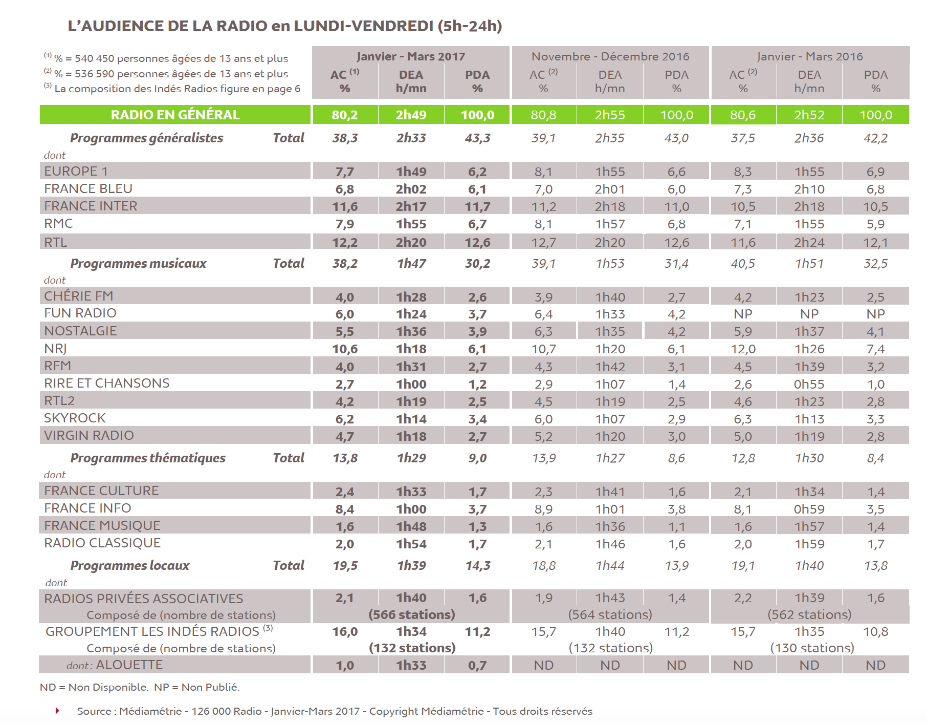 Hier, Téléréma s'est intéressé, dans un article particulièrement "fouillé", à un chiffre qui, habituellement, retient peu l'attention des uns et des autres. Celui de l'audience globale de la radio. Et Télérama de rappeler quelques vérités : "En novembre-décembre 2016, 80.8 % de la population française avait écouté la radio au moins une fois dans la semaine. Un an plus tôt, le pourcentage s'élevait à 81.9 %. Deux ans plus tôt, il s'établissait à 82.3%. Trois ans plus tôt, à 82.5 %". Plusieurs milliers d'auditeurs ont déjà déserté la radio. Parmi eux, les jeunes : "entre 2006 et 2016, la tranche des 13-24 ans a baissé de 16%" ce qui correspond à plus d'un million d'auditeurs. Pas de doute, les habitudes d'écoute évoluent. Vite.
