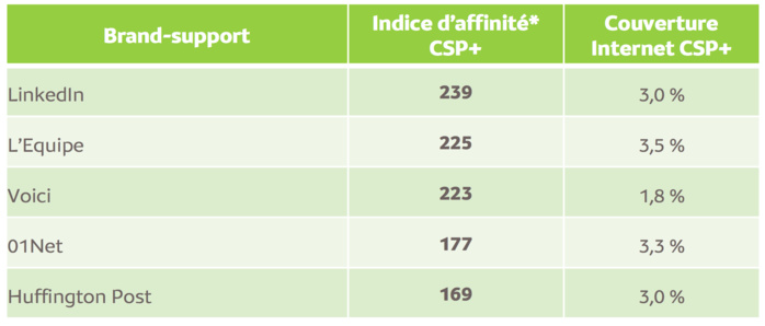 LinkedIn, L’Equipe, Voici, 01Net et le Huffington Post sont, dans l’ordre, les sites où les CSP + sont les plus représentés parmi les vidéonautes.