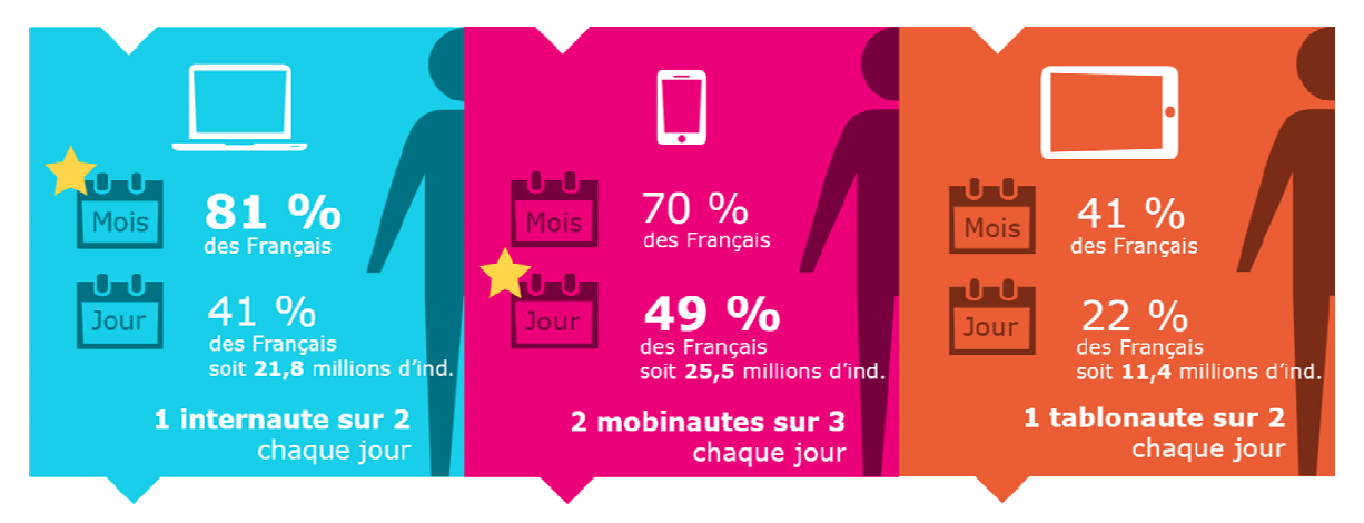 Les individus âges entre de 15 à 34 ans ne sont pas en reste : 79% des Français de cette cible se connectent à Internet au quotidien sur au moins un des 3 écrans.