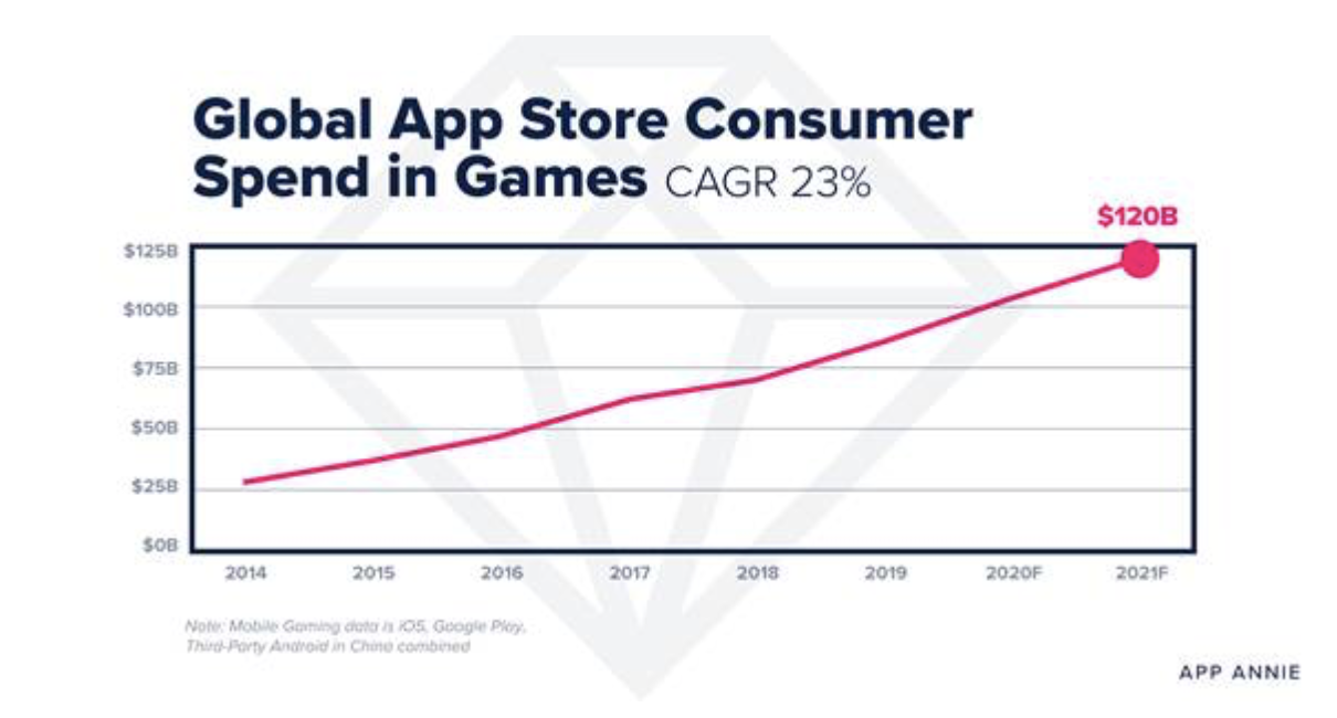 En raison de la crise, les jeux mobiles ont atteint des records en matière de téléchargements aux Q2 et Q3 2020 avec en moyenne 15% de téléchargements de plus qu’en 2019. Avec une demande croissante de jeux casual et core, les dépenses des consommateurs en matière de jeux mobiles atteindront de nouveaux sommets en 2021, dépassant les 120 milliards de dollars. Au cours des deux dernières années on constate un développement de toutes les catégories de jeux dont les deux extrêmes : les jeux hyper casual et les jeux hardcore. App Annie prévoit que 2021 sera l'année des jeux mobiles hybrides. En effet, les joueurs deviennent de plus en plus experts et les téléphones portables de plus en plus performants et capable d'offrir des expériences sophistiquées, auparavant disponibles uniquement sur console ou PC.