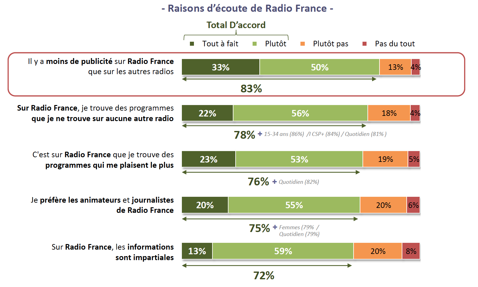 Pour les auditeurs réguliers, la moindre présence publicitaire est le premier moteur de choix de Radio France
