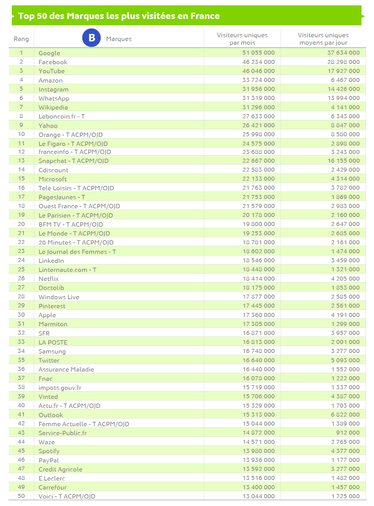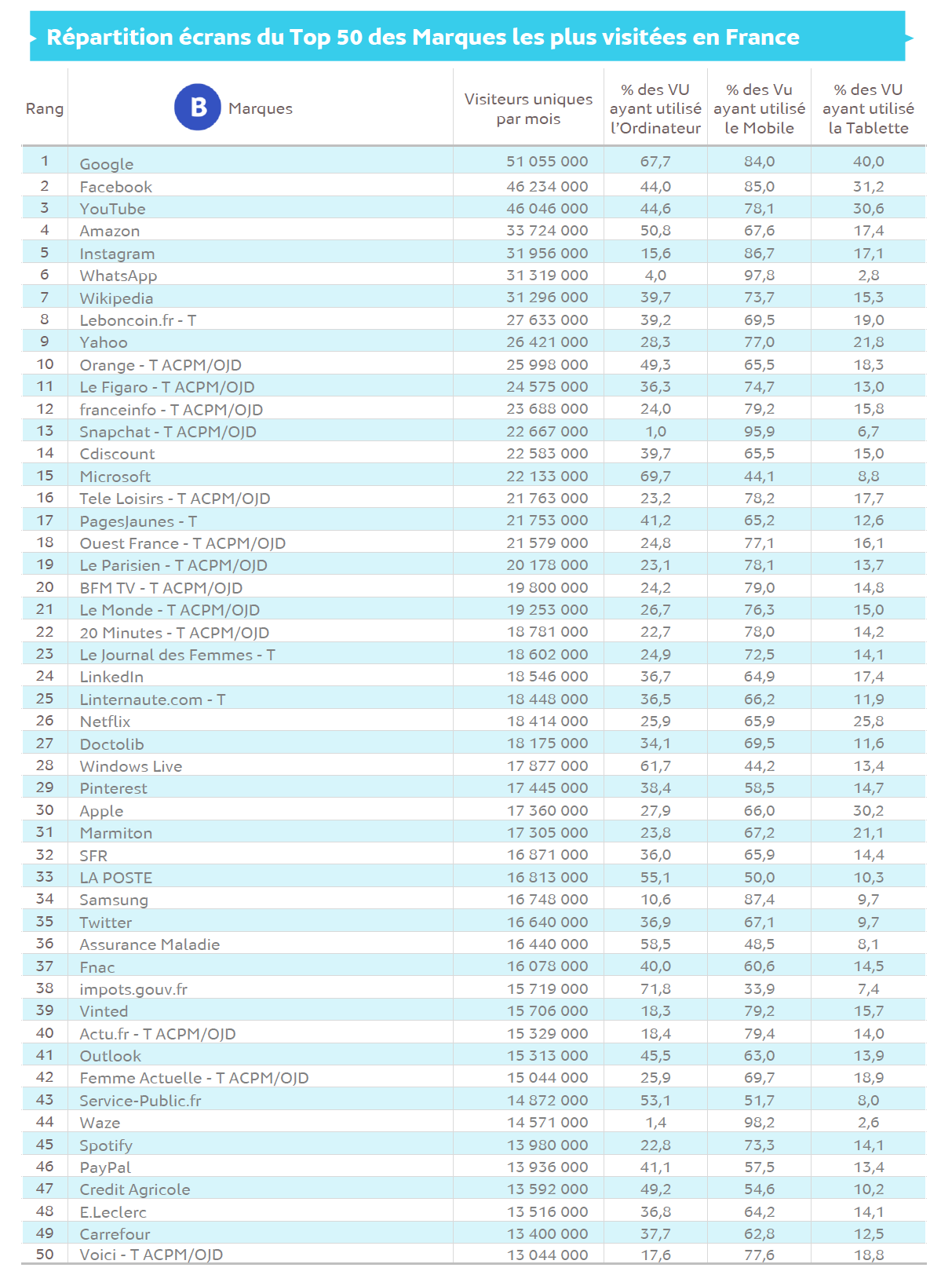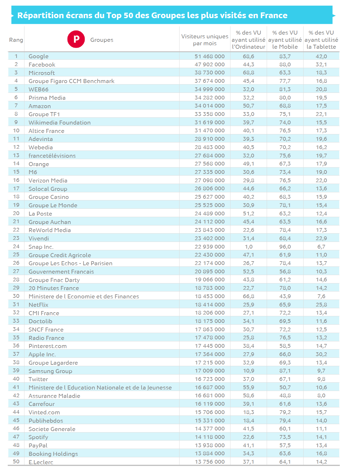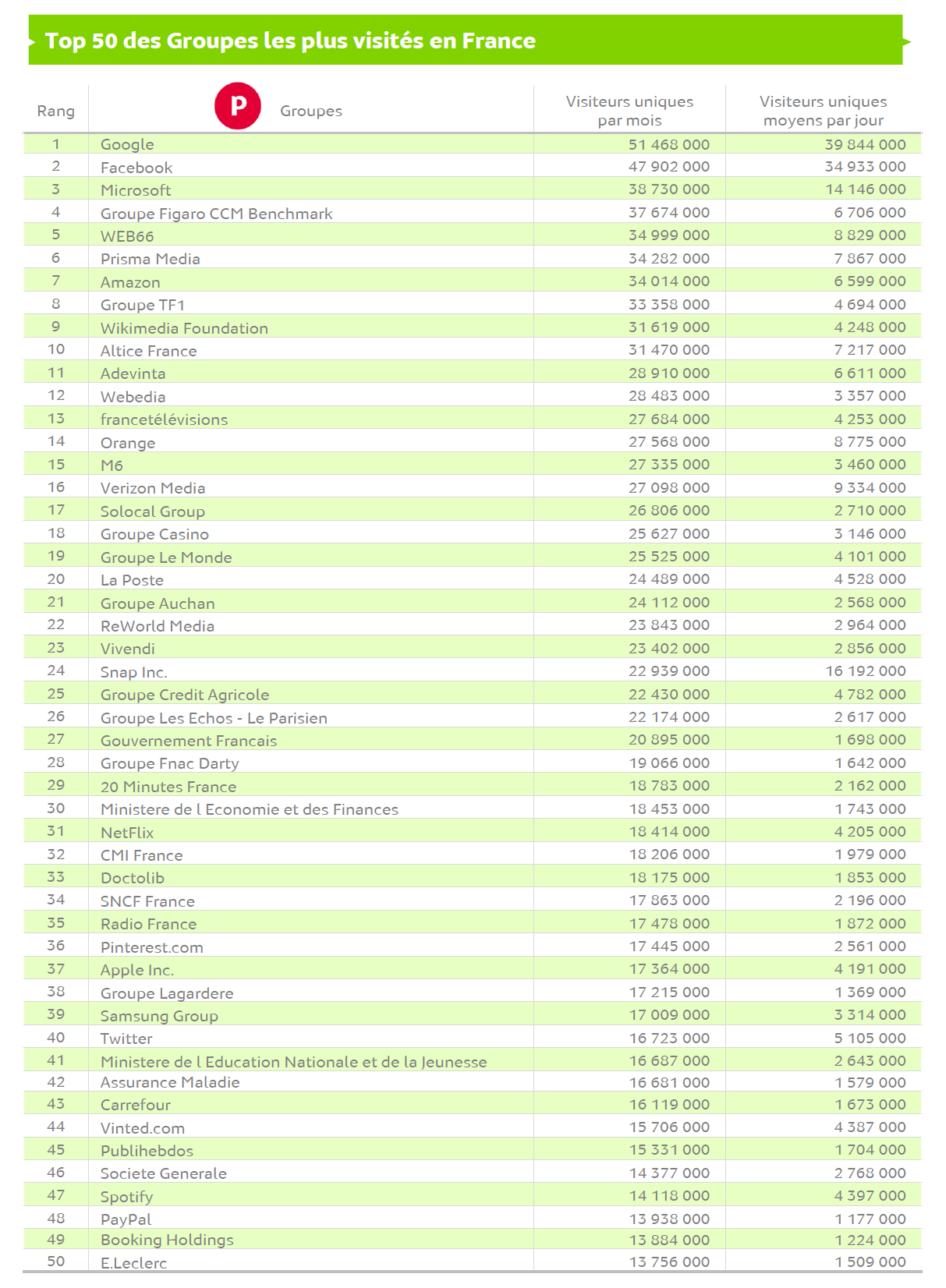 Source : Médiamétrie et Médiamétrie// NetRatings Audience Internet Global Tous lieux de connexion France Septembre 2020 Base : 2 ans et plus Copyright Médiamétrie Tous droits réservés
