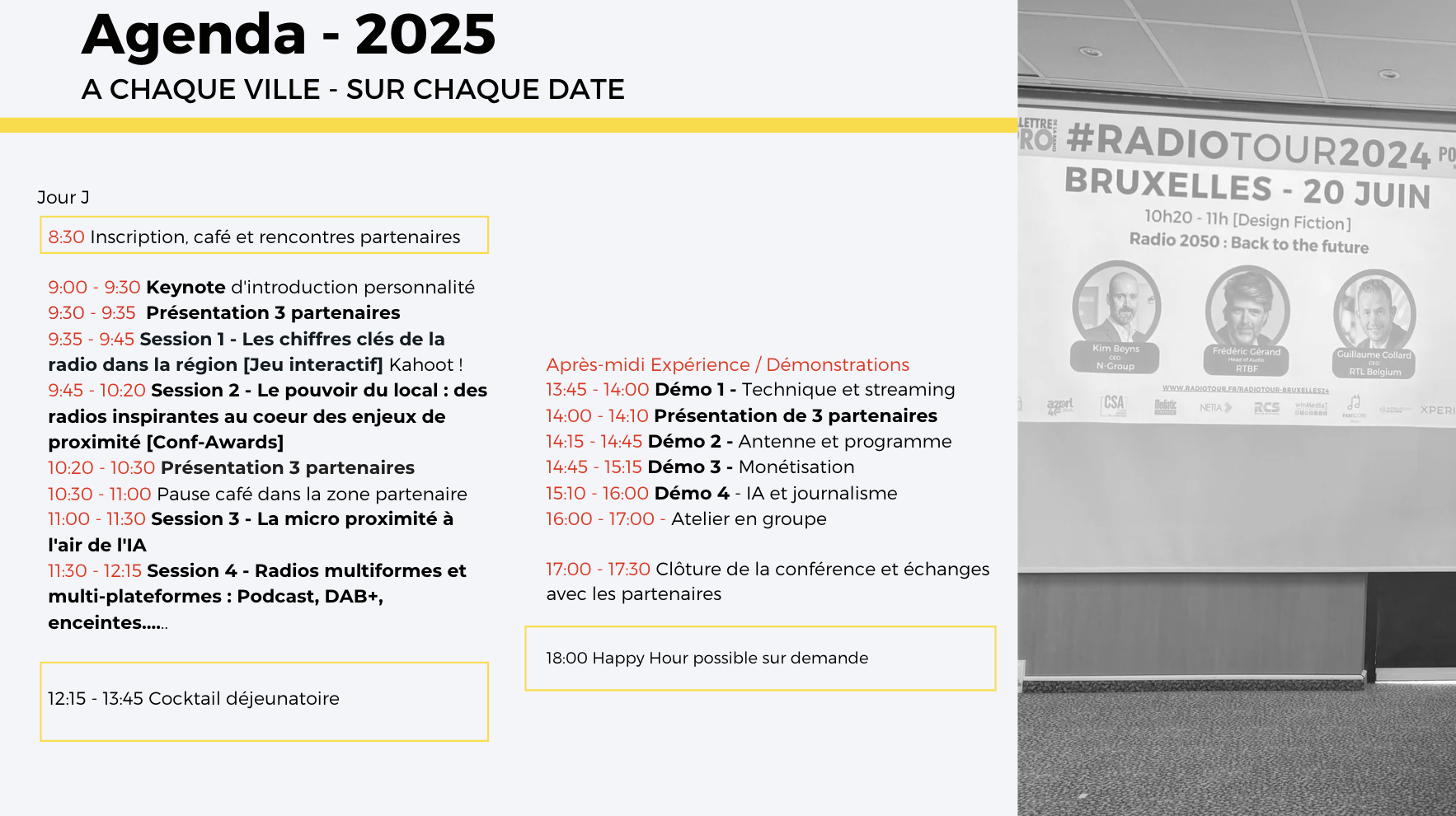• Une centaine d’invités par région représentant les principales radios locales et acteurs du territoire