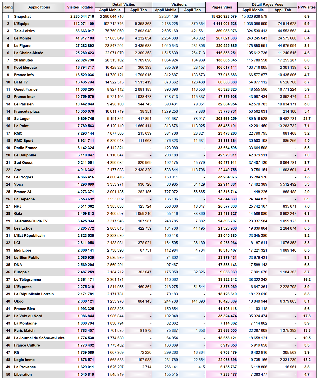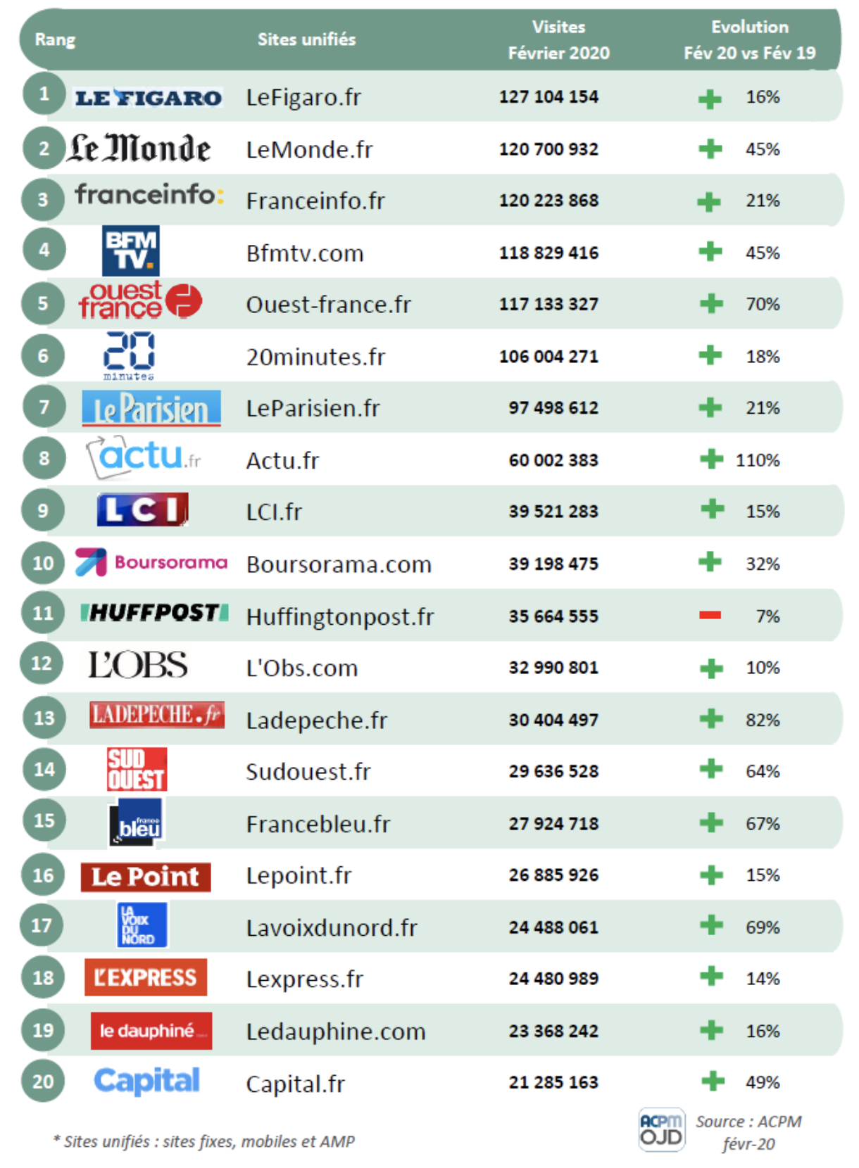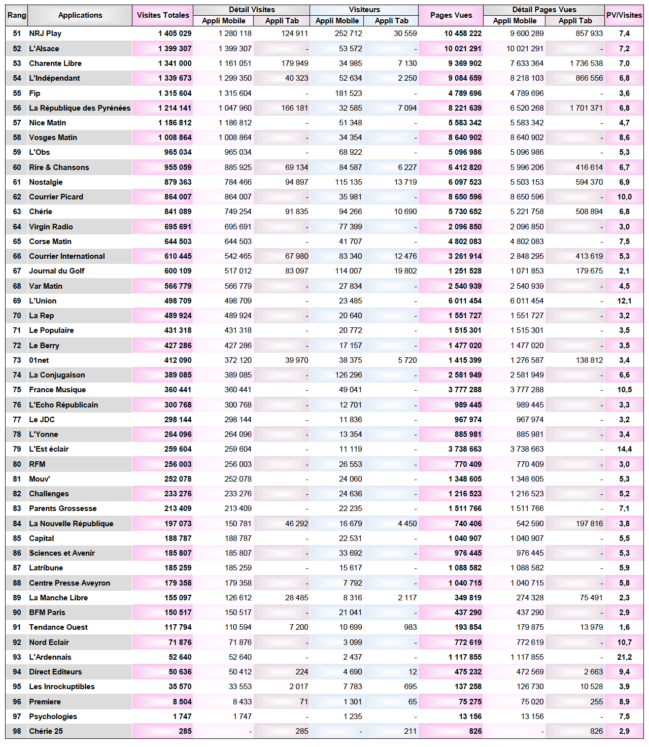 Dans le classement des sites fixes et mobiles grand public, c'est plus compliqué puisque ce classement est notamment trusté par les sites de la presse en générale et régionale en particulier.