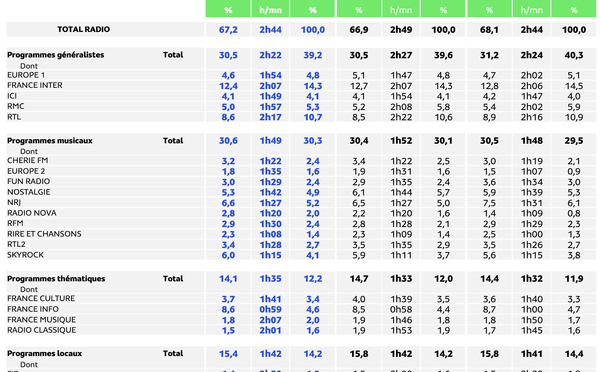 Médiamétrie vient de publier les résultats de son enquête Etude Audience Radio portant sur la période Janvier-Mars 2026. La Lettre Pro de la Radio vous propose ses diagrammes exclusifs pour comprendre toutes les audiences et leurs incidences.