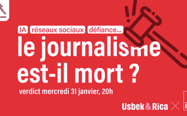 Le journalisme est-il mort ? Pour en débattre, Radio France et France Inter s’associent à Usbek & Rica et proposent un Tribunal pour les Générations Futures inédit, diffusé en public et en direct sur France Inter depuis le studio 104 de la Maison de la Radio et de la Musique, le mercredi 31 janvier à 20h.