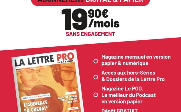Vous aimez La Lettre Pro de La Lettre Pro de la Radio ? Vous allez adorer la version premium. Outre l'accès au magazine mensuel en version électronique ou papier, vous avez accès de nombreux articles exclusifs publiés quotidiennement et de nombreux services comme le dépôt gratuit des offres d'emploi.