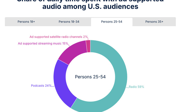 Au troisième trimestre 2025, la radio reste la première source d’écoute audio soutenue par la publicité aux États-Unis. Selon The Record, rapport trimestriel de Nielsen et Edison Research, elle concentre 62% du temps d’écoute quotidien, devant les podcasts (20%) et la musique en streaming (15%).