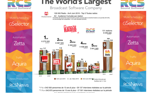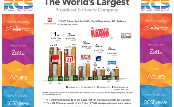 Diagramme exclusif LLP/RCS GSelector 4 - TOP 5 radios Généralistes en Lundi-Vendredi - 126 000 Radio Avril-Juin 2019