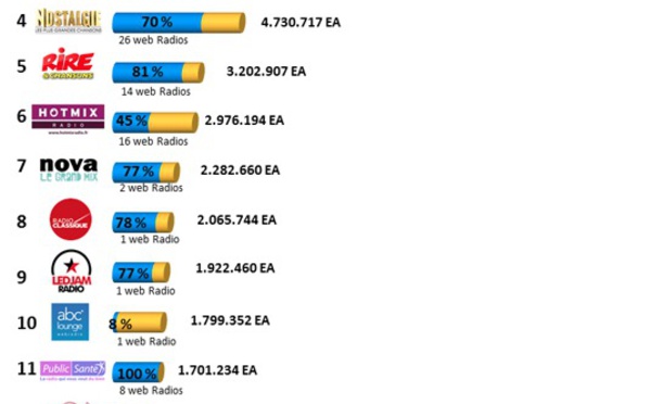Top 15 des webradios les plus écoutéesLe 24/02/2015 à 08:40