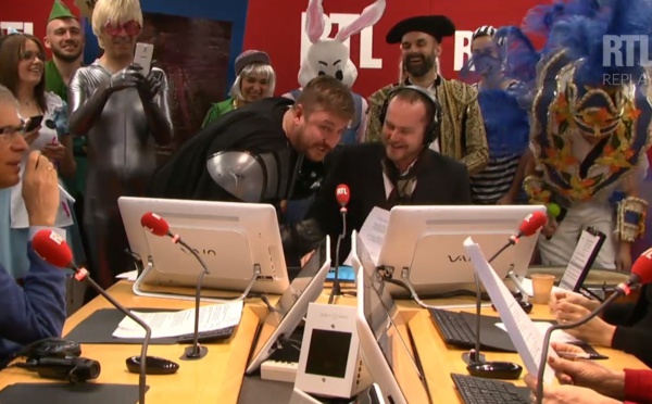 Ce matin, une dizaine d'animateurs et journalistes déguisés de Fun Radio a envahi le studio de RTL, durant l'émission Laissez-vous tenter. La joyeuse troupe costumée était conduite par Bruno Guillon et accompagnée de deux grosses caisses.