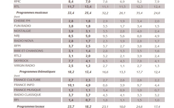 Le Top 10 des radios les plus écoutées - 126 000 Médiamétrie IDF |