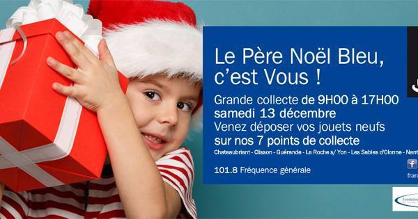 France Bleu Loire Océan s'engage autour de la solidarité et lance une grande collecte de jouets, le samedi 13 décembre au travers d'une journée spéciale et au coeur des 7 communes partenaires en Loire‐Atlantique et en Vendée. Elle invite les habitants à venir déposer un jouet neuf (non‐emballé) qui sera redistribué aux familles en difficulté, pour offrir un Noël heureux, aux enfants qui en ont le plus besoin.