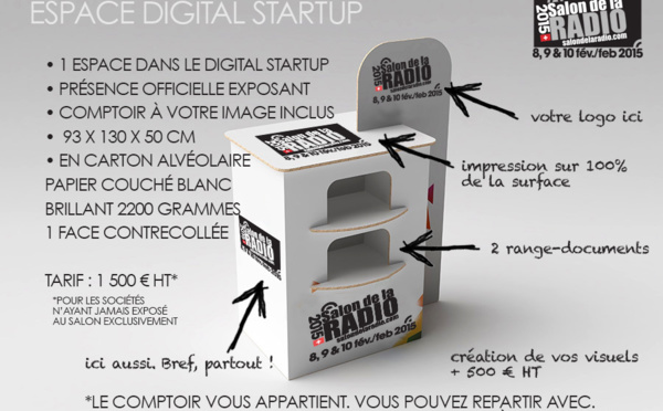 Le Salon de la Radio lance en février 2015 un nouvel espace dénommé "Digital Startup". L'occasion pour les nouvelles structures, les développeurs ou les sociétés n'ayant jamais exposé auparavant de pouvoir le faire, à moindre coût.