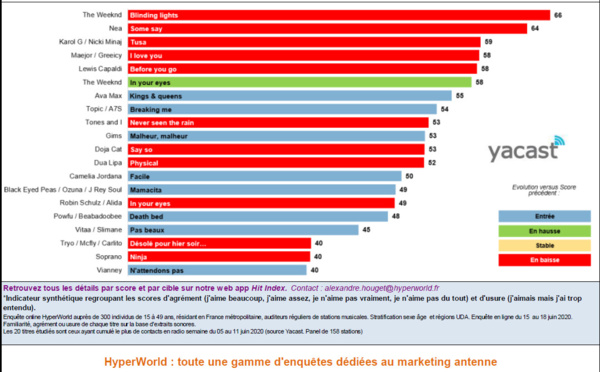 HyperTop France : l'agrément des auditeurs aux 20 titres les plus entendus en radio
