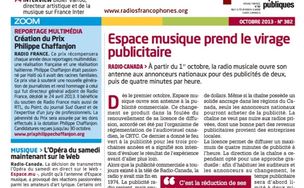 Micro 4 - Le magazine des Radios Francophones Publiques d'octobre en téléchargementLe 30/09/2013 à 10:00