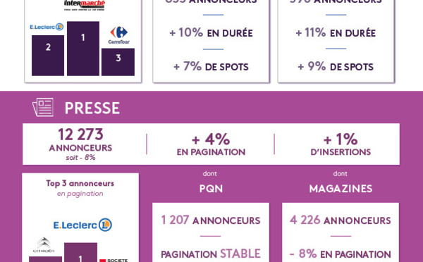 Kantar Media propose une nouvelle publication mensuelle et en image : AdTrends qui analyse le marché publicitaire en volume. L’infographie présente l’évolution des volumes publicitaires enregistrés par l’ensemble des médias traditionnels et digitaux.