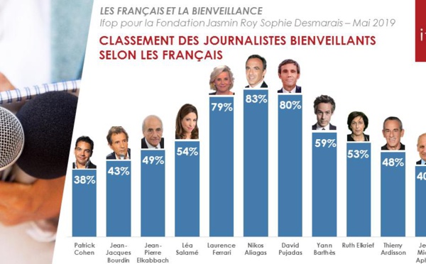 "Les Français et la bienveillance". Il s'agit d'une étude réalisée par l'Ifop et publiée à l’occasion de la publication du livre "Oser la Bienveillance". Si moins d’un Français sur deux (46%) ont entendu parler du concept de "bienveillance", on y apprend également quels sont les journalistes qui sont les plus et les moins bienveillants...