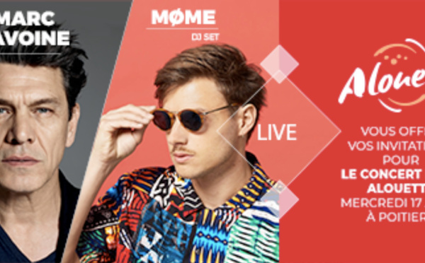 Alouette, la première radio régionale de France, organise un concert privé à la salle de La Rotative à Buxerolles à Poitiers, ce mercredi 17 avril à 20h30. La station a invité le chanteur Marc Lavoine et le DJ Møme.