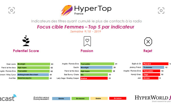 HyperTop France : l'agrément des auditrices aux 20 titres les plus entendus en radio