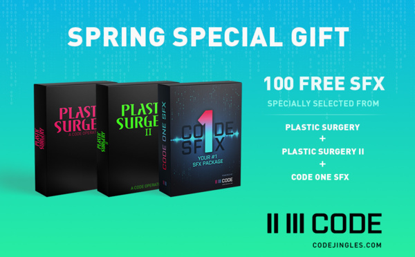 Souriez c'est le printemps ! C'est aussi l'occasion pour créer des nouvelles productions grâce à Code Jingles. Le studio vous propose de passer à un niveau supérieur avec un arsenal de 100 effets sonores à télécharger gratuitement.