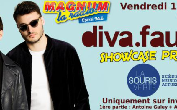Magnum la Radio reçoit Diva Faune en show case privé à la Souris Verte à Epinal, le vendredi 12 avril à 20h. 500 privilégiés pourront y assister uniquement sur invitation, à gagner en écoutant l'antenne et sur Facebook.