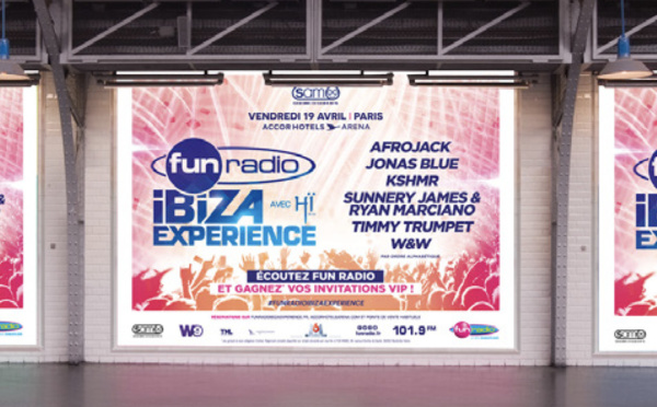 Pour la 4e édition de la Fun Radio Ibiza Experience, avec Hï Ibiza, Fun Radio lance une campagne d’affichage massive du 19 au 26 mars à Paris et en Île-de-France. La station annonce la venue de Afrojack, Jonas Blue, KSHMR, Sunnery James & Ryan Marciano, Timmy Trumpet et W&W.