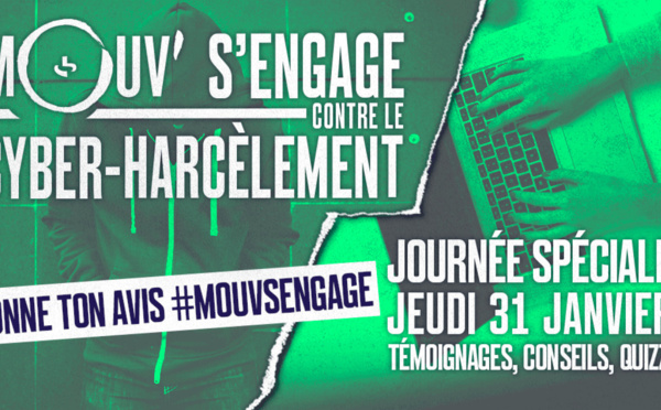Mouv’ proposera une journée spéciale, ce jeudi 31 janvier, avec des témoignages, des partages de conseils et initiatives afin de faire face au cyber-harcèlement qui touche de plus en plus de jeunes. Les équipes de Mouv’ se mobiliseront tout au long de la journée, à l’antenne et sur les réseaux sociaux.