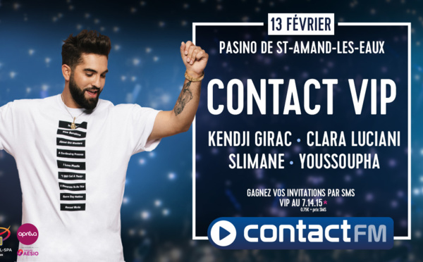 Contact FM donne rendez-vous pour un nouveau "Contact VIP", le premier de l'année 2019. Ce concert se déroulera le mercredi 13 février prochain à 20h au Pasino de Saint-Amand-les-Eaux. Sur scène, ce "Contact VIP" réunira Kendji Girac, Slimane, Clara Luciani et Youssoupha. Les places pour y assister sont actuellement gagner.