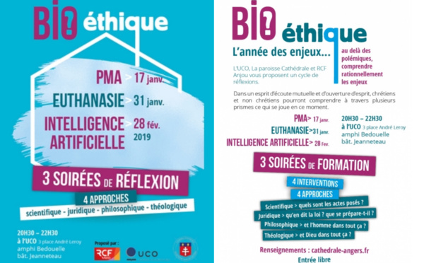 En partenariat avec l'Université Catholique de l'Ouest et la paroisse Cathédrale Notre-Dame d'Angers, RCF Anjou organisent trois soirées de réflexion sur le thème de la bioéthique, les 17 janvier, 31 janvier et 28 février.