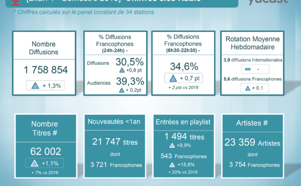 Fin de saison pour les radios françaises, période idéale pour faire le bilan de la programmation. Comme chaque année, la société Yacast s'est intéressée aux diffusions sur les radios durant ce 1er trimestre 2018. Voilà qui passionnera les amoureux de la musique et, en particulier, les programmateurs musicaux.