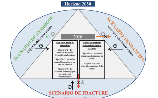 "La révolution numérique et les transformations majeures du secteur audiovisuel remettent en cause les principaux équilibres économiques". C'est le constant dressé par le Conseil supérieur de l'audiovisuel. Pour imaginer l'avenir de l'audiovisuel, le CSA envisage trois scénarios...