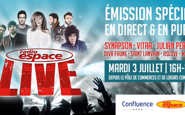 À l’occasion du Radio Espace Live, Radio Espace propose aux lyonnais une émission en public et en direct, avec tous les artistes du concert : Vitaa, Julian Perretta, Synapson, Diva Faune, Saint-Lanvain, Aslove, et Mozambo. Une émission accessible à tous les auditeurs.