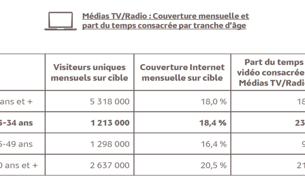 Web : la catégorie "Médias TV/Radio" attire les 15-34Le 02/05/2018 à 07:38