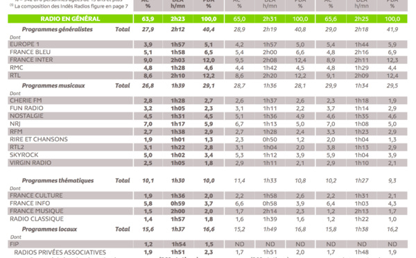 Avec un gain de 24 000 auditeurs sur un an, soit 2.4% et plus d’un million d’auditeurs chaque jour, Radio Classique confirme ses choix éditoriaux et sa nouvelle grille lancée à la rentrée marquée par l’arrivée de Rolando Villazon (17h à 18h) et de Gautier Capuçon (le week-end, de 10h à 11h). La radio affiche une audience cumulée de 1.9 ainsi qu’une part d’audience de 1.6. La durée d’écoute moyenne est de 1h48.