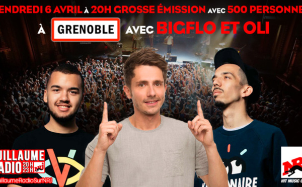 "Guillaume Radio" s’installe avec BigFlo & Oli, en direct et en public, à Grenoble pour une émission spéciale, ce vendredi 6 avril. De 20h à 23h, toute l’équipe animera l’émission Guillaume Radio sur NRJ en direct de l’Espace Pelvoux (à Alpexpo) avec la présence du tandem toulousain BigFlo & Oli.