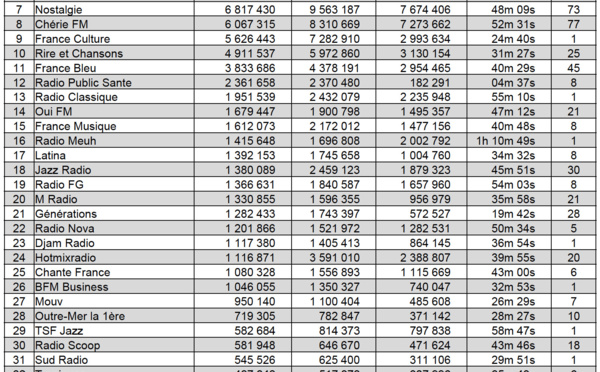 Finalement, et en y regardant de plus près, la place de Première radio de France est occupée par deux stations : France Inter en audience cumulée et RTL en part d'audience. Et dans le milieu, on vous le rappelle une énième fois, c'est le critère de la part d'audience qui fait autorité, principalement chez les annonceurs…