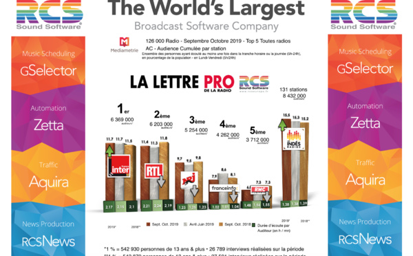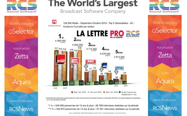 Diagramme exclusif LLP/RCS GSelector 4 - TOP 5 radios Généralistes en Lundi-Vendredi - 126 000 Radio septembre-octobre 2019