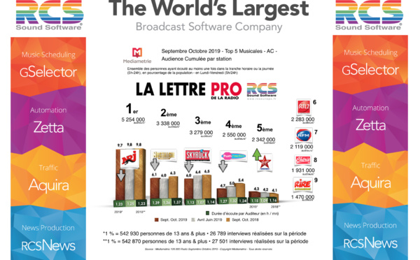Diagramme exclusif LLP/RCS GSelector 4 - TOP 5 radios Musicales en Lundi-Vendredi - 126 000 septembre-octobre 2019
