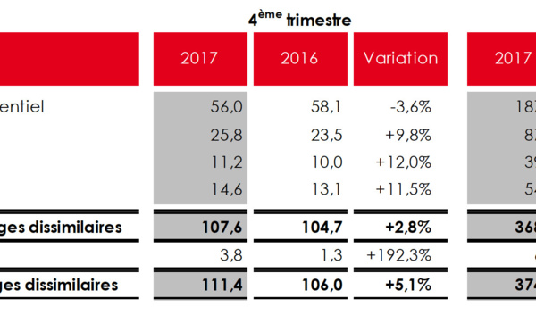 NRJ Group enregistre au 4e trimestre 2017 un chiffre d’affaires consolidé de 107.6 M€, en hausse de 2.8% par rapport à la même période en 2016. Le chiffre d’affaires consolidé de 2017 s’établit à 368.0 M€, en léger recul de 0.5% par rapport à 2016.