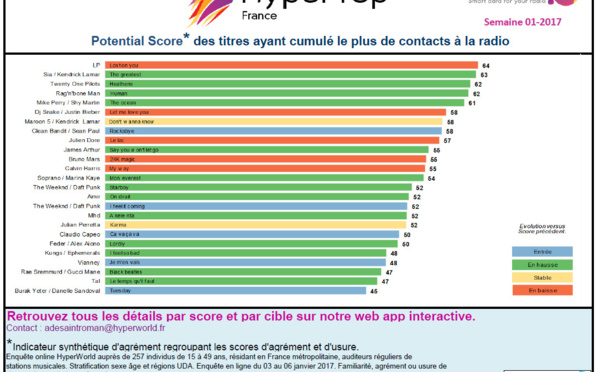 Hypertop France : l'agrément des auditeurs aux 25 titres les plus entendus en radio