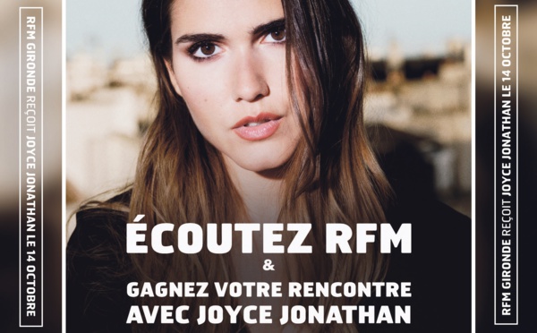 Ce vendredi 14 octobre, RFM Gironde organise un "Meet and Greet" avec la chanteuse Joyce Jonathan. Patrick Le Gac recevra la chanteuse dans le "13-17" sur RFM Gironde. Au programme : une heure d'interview, une heure de live et une heure de rencontre. Tous les auditeurs invités à cette rencontre sont également invités par RFM Gironde au concert de Joyce Jonathan le soir même à Mérignac près de Bordeaux.