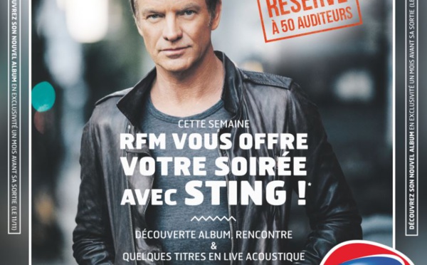 Un mois avant sa sortie, RFM vous propose de découvrir en exclusivité le nouvel album de Sting. Mardi prochain, le 11 octobre, Sting sera dans les studios de RFM pour faire découvrir à une cinquantaine d’auditeurs privilégiés son nouvel album (écoute de l’album en intégralité un mois avant sa sortie le 11 novembre) et interpréter quelques titres en live acoustique.