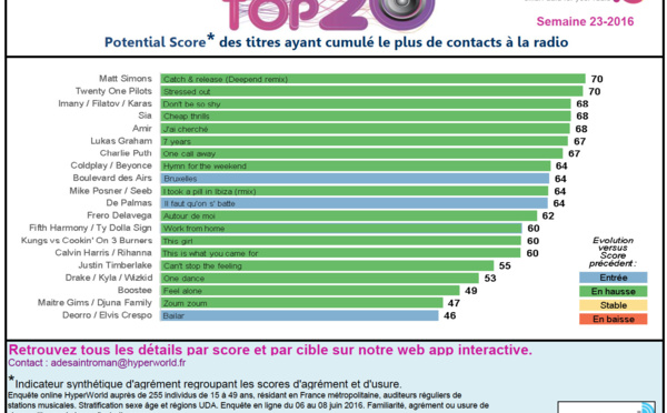 HyperTop20 : les 20 titres les plus entendus en radio